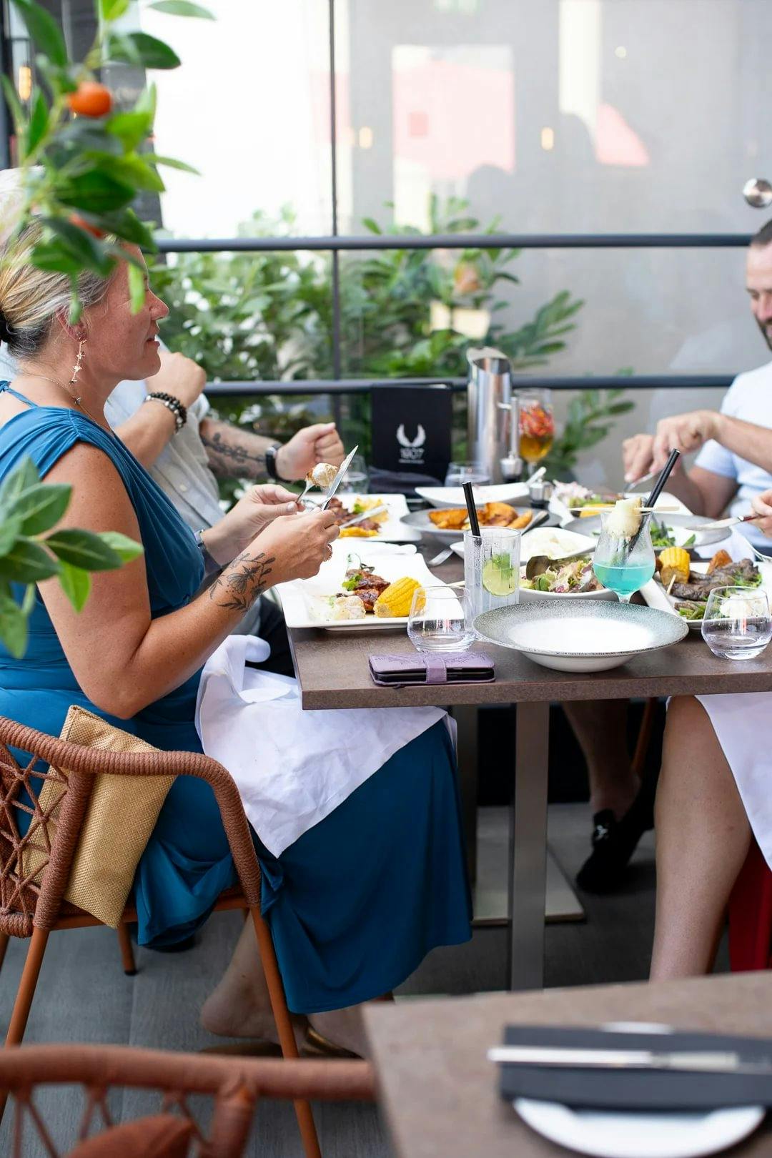 Outdoor dining at our restaurant near Mercedes-Benz World